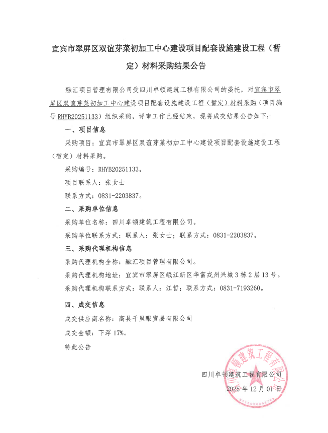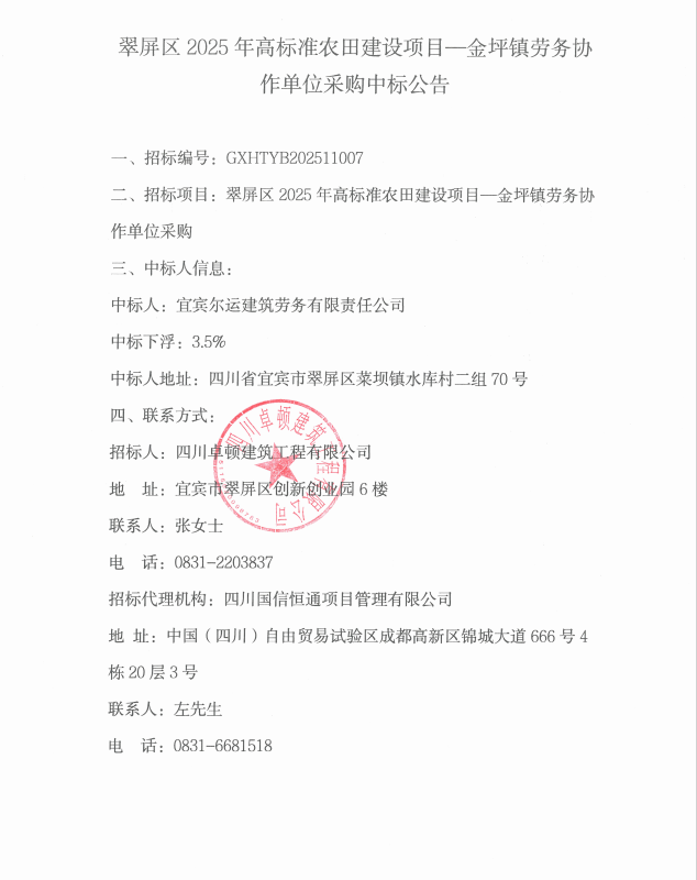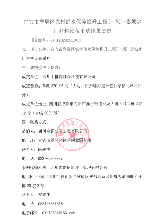2025-12-05 详细宜宾市翠屏区城乡供水一体化建设项目(一期)-象鼻水厂劳务协作单位采购